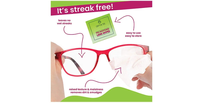 - Pre-moistened cleansing wipes for lenses