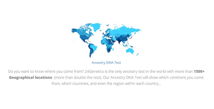 It is the best ancestry test that makes the test with database data which has 400 geographical pieces of information. Health test reports also identified 250 types of health traits. More than 30 countries are having 24Genetics DNA labs, so anyone can get these reports through simple procedures.