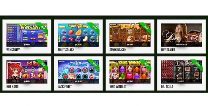 - Slot games with different bonuses and free spins