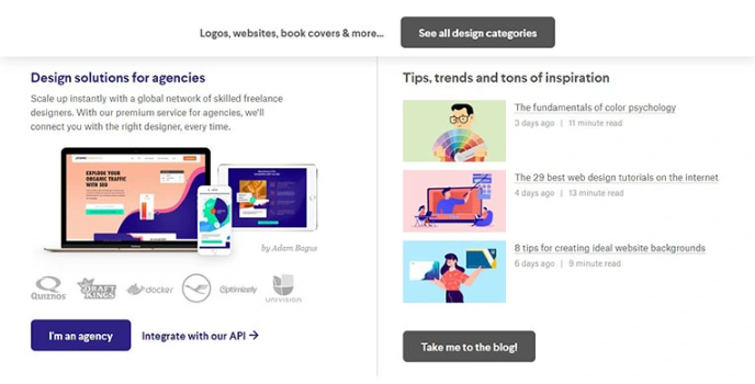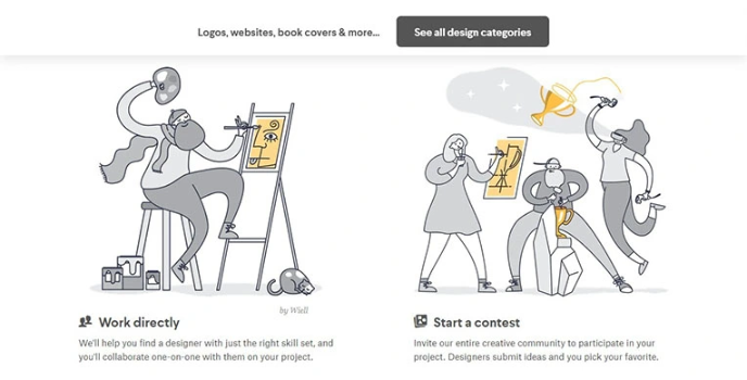 99 Designs freelance platform helps get creative concepts from various designers worldwide. This platform provides business services such as logo designing in more than 90 categories. It helps connect web and graphic designers to create graphics such as logos, web design, illustrations, etc. Ninety-nine designs come with an intuitive design posting process wherein you can present ideas and thoughts to the professionals in an organized manner. Other crowdsourcing websites such as Design Hill Freelance Platform also achieve a clear communication level.