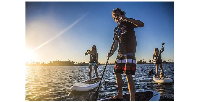AA-Inflatable Paddle works best as it is an allrounder board with a sleeker Aerodynamic profile for all beginners and families. It is suitable for all waters, including lakes, rivers, canals, and prophecies, which can also be used for adventures, touring, yoga surfing, and racing with a more pointed shape that is perfect for cutting into waves.