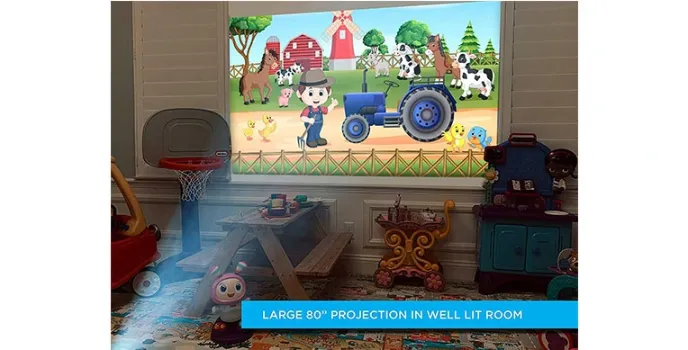 It uses a 1080p HD DLP optical engine mated to a high MTF lens for best clarity. It's minimal and lightweight, measuring just 1.48 pounds, making it perfect for outdoor use. It provides us with 90 minutes of runtime, and the luminous LEDs can last for up to 30,000 plus hours. It produces a brightness of 600 lumens for better picture clarity. It is rated among the best portable projectors in the market. A high contrast ratio ensures that the image quality is sharp and has the best black levels in its class.
