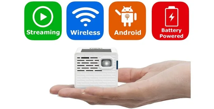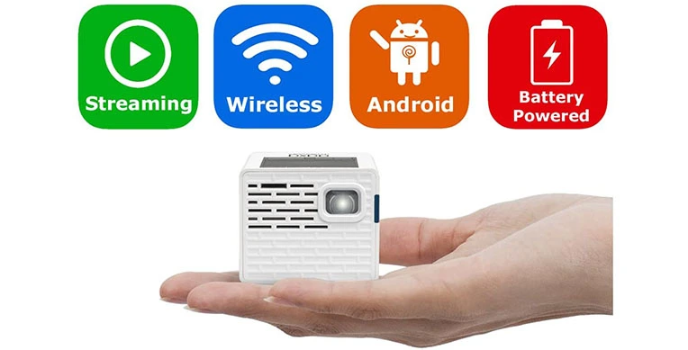 The latest in the list of portable projectors is the Aaxa P2 smart portable LED pico projector for homes and businesses. It offers a whole host of features. It is a versatile mini cube-designed projector and uses 130 LED lumens for a bright picture and uses vibrant color technology. It is the best projector in terms of eye comfort and fatigue, and it also includes HDMI, AV, USB, microSD, and AUX out connectivity.