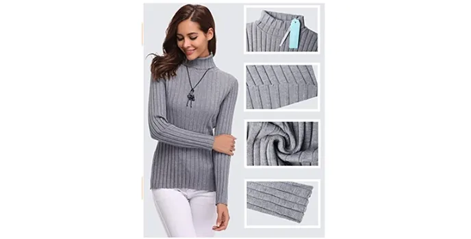 Here, women can select the total length of sweater and bust size, cuff length, sleeve length size, and shoulder-length from small to XXL. Anyone can enjoy a cashmere style pullover sweater like a formal top due to having a turtleneck and comfortable elastic slim fit.