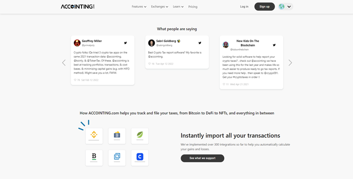 If you are looking for a tool or software that helps you with calculating and filing crypto taxes, then you are on the right track. ACCOINTING might be the platform that you are looking for. It is a tool with professional and experienced experts. The platform is one of the best for providing portfolio tracking, transactions, costs & bases, and minimizing capital gains.