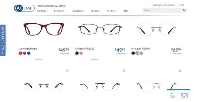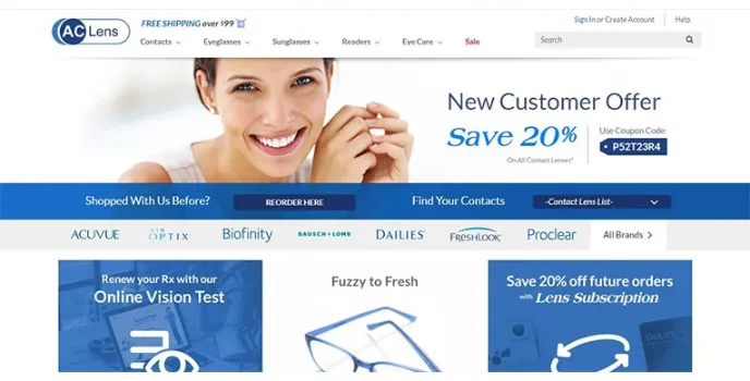 Shop contact lens to eye care treatment products through Coastal online glasses shop, Sunglasshut online glasses shop, similar to AL Lens prescription glasses website.