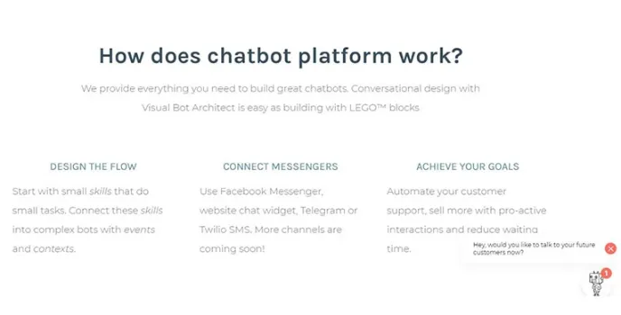 This chat software significantly integrates with Shopify, WooCommerce, and Googleโs Natural Language API. With a drag and drop tool editor, Active Chat is similar to HelloTars and Octane AI. It can produce the best visual chatbots with beautiful colors, and layouts to captivate the visitors. It helps gain more customers with a bunch of grow tools like Live chat widget plug-ins, attaching messenger links and landing pages.