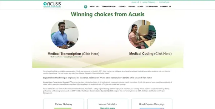 Acusis is a renowned medical transcription service company that serves clients around the country and is always on the lookout for talented individuals who share our values of hard work, dedication, & striving for the highest possible standard of quality.