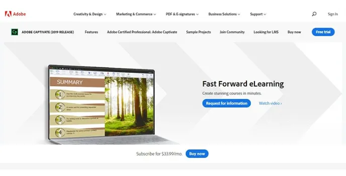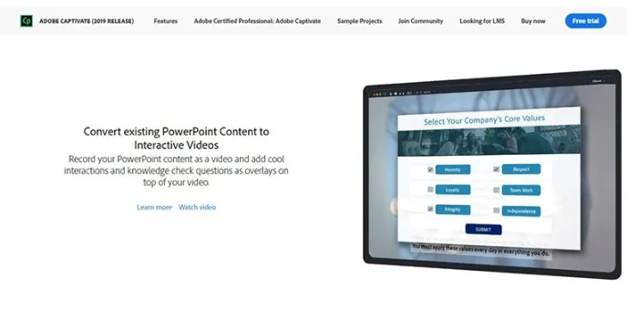 Adobe Captivate is one of the best online course creators. The most beneficial factor of this software is its ability to conduct live sessions. This software enables you to host live calls whenever you want and make learning even easier for participants. This tool offers both free and paid versions of video calls to meet the host's specific requirements.