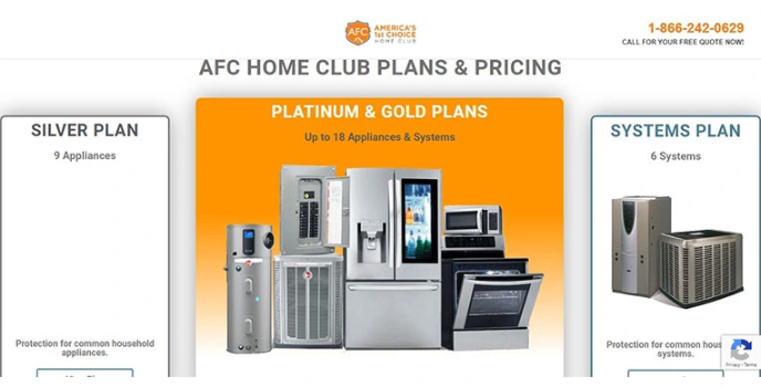 AFC Home Club offers three varieties of plans to choose from the best home warranty services. In System Plan, protection for six common household systems is covered. In the Silver Plan, protection for nine common household appliances is covered. And in Platinum and Gold Plans, protection for up to 18 major systems and appliances is covered.