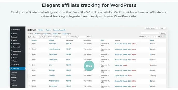 AffiliateWP - Elegant Affiliate Tracking Software For WordPress Plugin