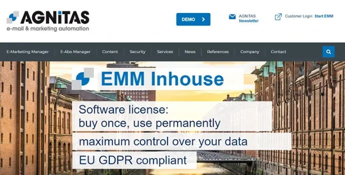 E-Marketing manager EMM helps you to send emails and web push notifications, SMS and fax. Those reach your customers on the web throughout the world. You can say EMM is a clever combination of tools to reach customers properly. Once you buy the AGINITAS software incense, use it permanently on your bulk data. Here, EMM inHouse and EU GDPR will be more useful to you than others.