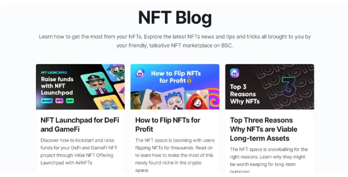 AirNFTs is one of the best Binance NFT marketplaces that allows users to mint their artworks, memes, punks, and more in the format of JPEG, PNG, or GIF. The maximum size of the file is 10MB.