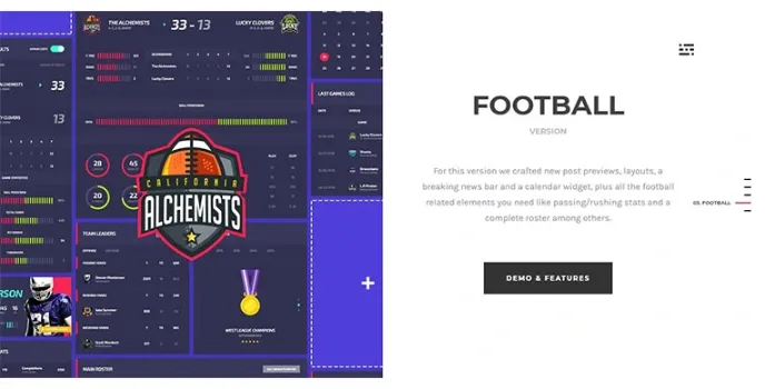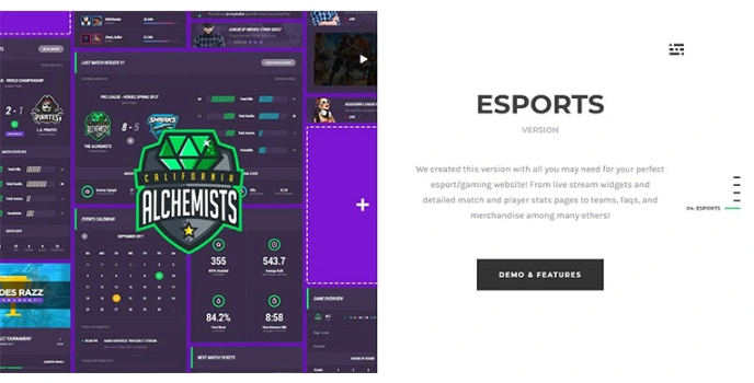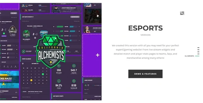This gaming word press theme is suitable for esports and gaming clubs. The word press theme lets you build your own sports team or magazine website. You can include news posts, merchandise shops, display player stats, and offer detailed match information and full infographics. You can also include the team overview and stats, individual stats, and tons of different things for creating the most beautiful and informative website ever.