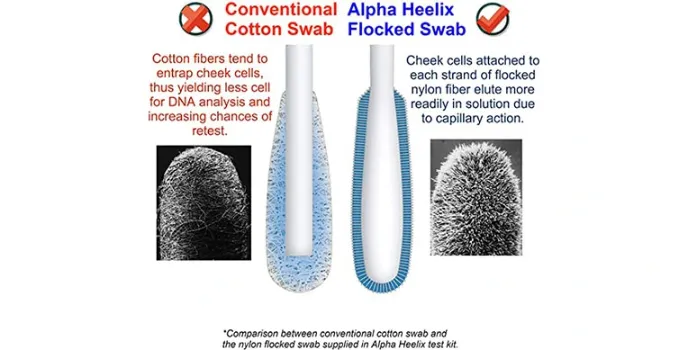 It is a cotton swab test. DNA Testing kit contains Premium Alpha Heelix nylon fiber flocked swab. A cotton swab is placed inside the cheek to collect the DNA sample. You have to rub the cotton swabs inside your cheeks for a while. It is then taken to the sample tube, and then it is made for submission. It provides fast and highly confidential paternity DNA testing.