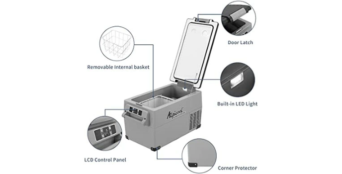 The temperature adjustment in the mini deep freezer is digital and has a built-in LED light with an internal basket that allows stuff to be kept inside. Hence from a functionality point of view also, the Alpicool fridge freezer is a great option.