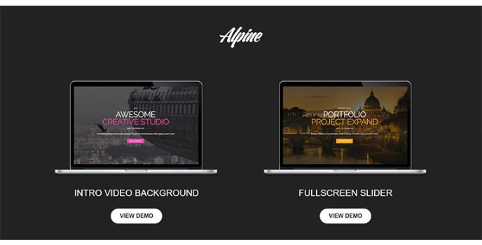 For each part, Alpine allows you to set a custom context. A super-quick way to get your site creative. Parallax parts make your website more stunning. For the Portfolio section, Alpine also implements AJAX features. Media like Twitter, Vimeo, etc. are also sponsored.