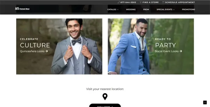 The customers can find the nearest store just by clicking on find stores. Then you can visit the store and teel your taste and the suiting requirement so that the formal wears provided are the ones that increase your look at any special event.