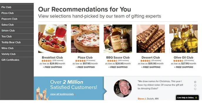 - Largest provider of gourmet gift of the month clubs