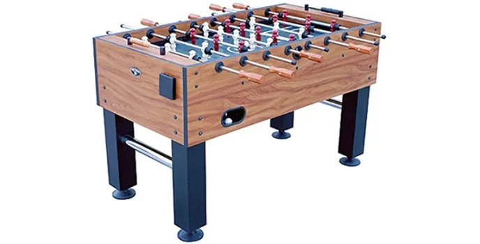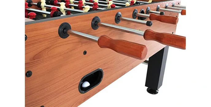 It is advisable to compare the features of similar brands so that the correct buying decision is made. Other brands like Kick Vanquish Foosball Table and Sunnydaze Decor Foosball Table have a semi-solid stainless steel rod with a strong square-shaped table. It has an adjustable golden configuration with a dominant body in mellow Pearl grey colour. The foosball table provides a built-in beverage holder as an attachment. The table can provide high performance in a contemporary setting and a laminated field that resembles soccer fields.