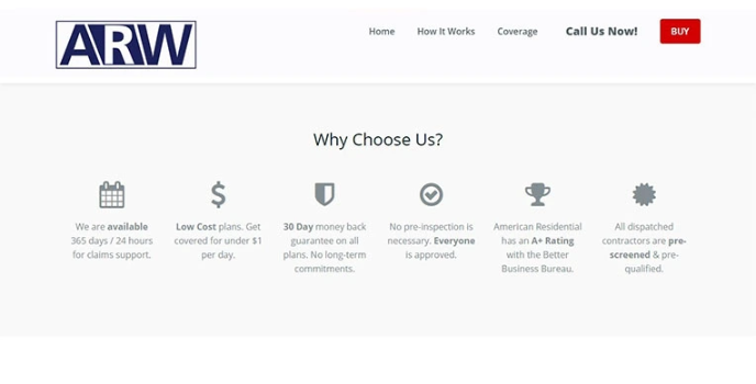 This insurance and warranty service provider provides customer care and emergency services 24 hours a day, seven days a week, 365 days a year. Also, it guarantees repairs to the service for 30 days while it has a $55 service rate, lower than the $75-$1255 industry average. American Residential offers clients a range of policies that suit their specifications for home appliances and systems and is unique in that it includes coverage of the household electronics of your home, insurance that many home warranty providers do not provide.