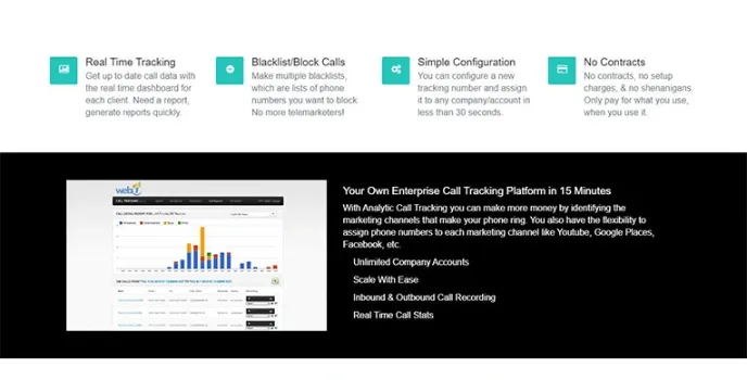 Compared to the various call tracking softwares 800response.com and Clixtel software this analytic call tracking software advanced call tracking with its latest tools that enable marketing channels to generate leads through the routing and unique tracking numbers.one of the best features of this software is reportings. It delivers the reportings through the call graph during the set time and lists the individual calls by location, time, and length of the call. This would improve the productivity of the business. It also includes the call broadcasts and voice drops, so that you can also build your call tree with its simple drag and drop functionality.