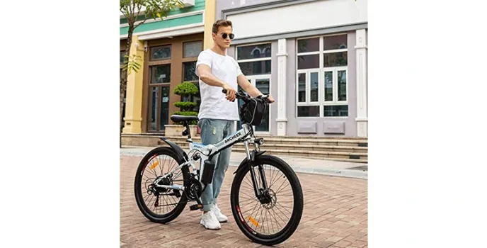 The ANCHEER 26” full suspension mountain bike, has a 250W rear hub motor that easily scoots this ancheer bike along with average acceleration, a top throttle speed of 17 mph, along with three levels of pedal assistance. The 288Wh battery capacity also gave this particular ancheer electric bike a respectable distance range in our testing. This ancheer folding bike handles well and feels a like a traditional and a very conventional yet, elegant mountain bike, plus this ancheer folding electric bike comes with a suspension fork and an amazing pair of tires that work well for light-duty off-road use. The ancheer folding electric mountain bike 26” has simple yet functional controls, plus it comes with a headlight for convenience and safety. This ancheer power plus folding electric mountain bike 26” also has a reasonable price tag.