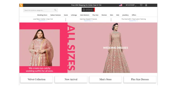 A unique feature offered by Andaaz fashion is that it has wide collections of Plus size wear from 48 to 68 size that makes it more modest and customized for customers to be a part of Andaaz fashion.