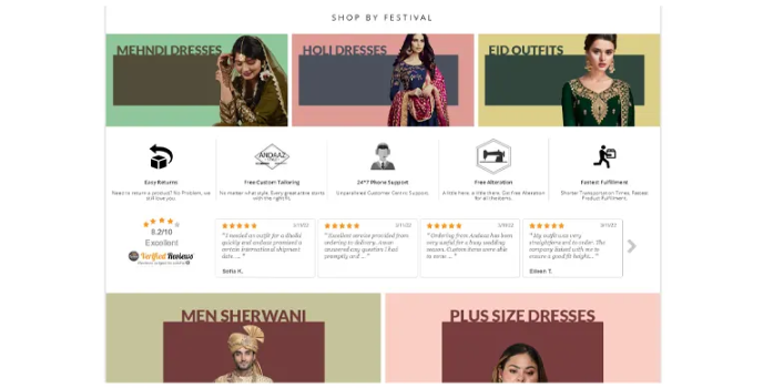 Andaaz Fashion offers a wide range of ethnic wear for women, men, and kids for casual and wedding occasions, with its exclusive handmade Jewelry. It offers updated designs and inspired trends that are targeted by customers for a new variation in the fashion taste of different regions of India. Its global trend and value-added offerings give an easy and enjoyable experience for its customers.