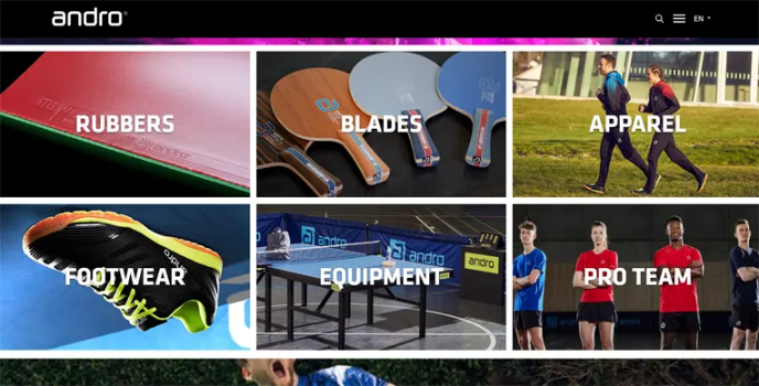Andro provides users with ping pong paddles with the ideal model for the grip, rubber, and levels of control, speed, and effect. Andro produces professional paddles with more and more technology added. Their professional paddles can optimize users' games in the most personalized way possible.