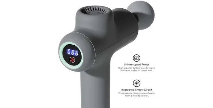 This is the cheaper massage gun with a tiny, portable, and convenient with adaptable heads for extraordinary manners of massage. Hammer and cushion heads are designed to soothe the muscle groups. Apollo Kinetics boost your blood circulation up and intensify the blood pressure by putting on operating handily with a one touch controlled panel technique. This is the Weightless and handy massage gun with a developed percussion remedy for deep tissue massage and to speed up the muscle recovery. The highest operating speed of this massager is 2700RPM.