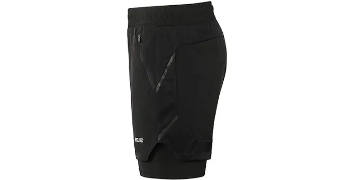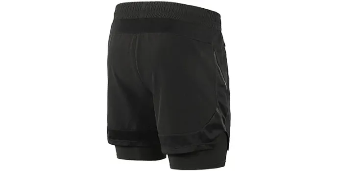 Arsuxeo - Black Color 2-in-1 Running Shorts with Elastic Closure