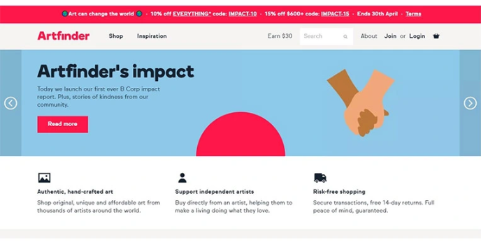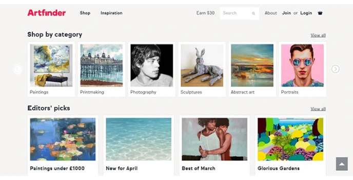 Artfinder is one of those online learning portals that features an authentic and handcrafted design on a subscription basis, making it one of the most accessible and pocket-friendly art sites ever. Artfinder is known for its branding, and it sells itself as a dating site for art lovers. Using Artificial Intelligence and personal shoppers, this website matches the buyers' interests with the art displayed.
