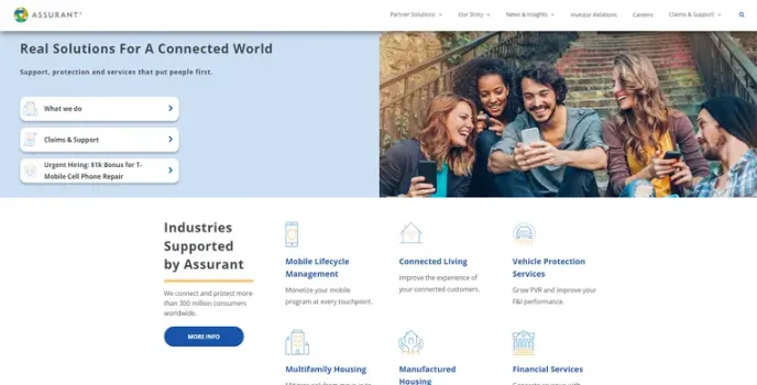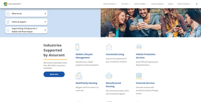 Its smart technology makes it connected to the real world with tailored products based on local needs to help consumers feel confident. Its partnered solutions are mobile device lifecycle management, flood solutions, multifamily housing, vehicle protection, funeral, final expenses, and other financial services.