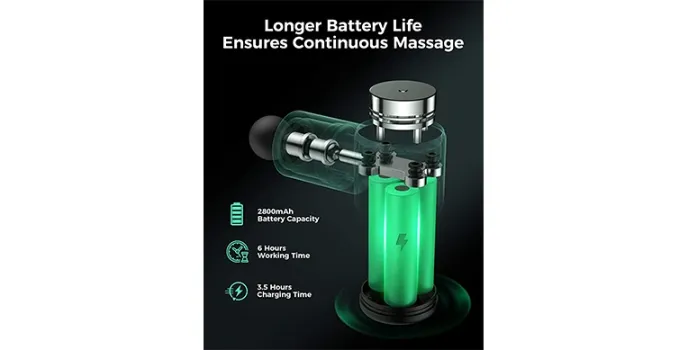 Astamaniana is made with premium and aviation-grade aluminum alloy. It can withstand heat and is a highly scratch-resistant product. It is built-in with 2800mAh capacity Lithium batteries. Moreover, the product has a brushless high-torque motor that can run smoothly for 6-12 hours once fully charged. It is a quiet product and is rated as one of the best muscle massagers.