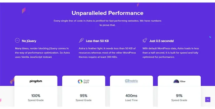 Astra lightweight wordpress child themes are known for their super-fast performance, and this most lightweight theme gives unmatched performance in the Digital Business market. Thus, it is a fully optimized website for effective and quicker performance.