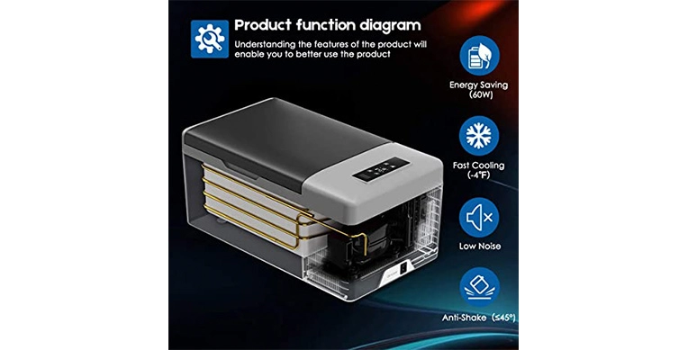 The travel freezer comes with a superb battery protection level setting ranging from H, M, and L. At its extreme level, the freezer automatically stops cooling to avoid battery run-out situations in cars.