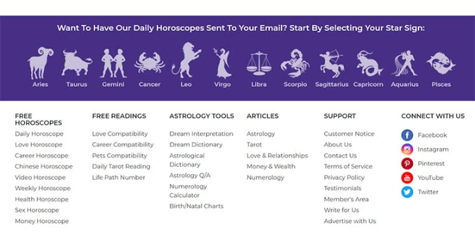 The sign-up process of this website is quick and easy and can easily be done with the help of your email address and sun sign. Signing up helps get access to your daily horoscope.