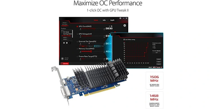 The silent 0dB cooling technology allows users to work in peace while creating or editing their design projects. The quiet operation is suitable for it in multimedia centres for viewing content without any disturbance. The reliability of this mini external graphics card of multiple purposes is top-level as it is integrated with Auto-extreme technology. GPU Tweak II is a component that makes the performance tweaking effortless, and the brand new intuitive interface is user-friendly, which enables the users to enjoy more visually spectacular videos and 3D animated clips.