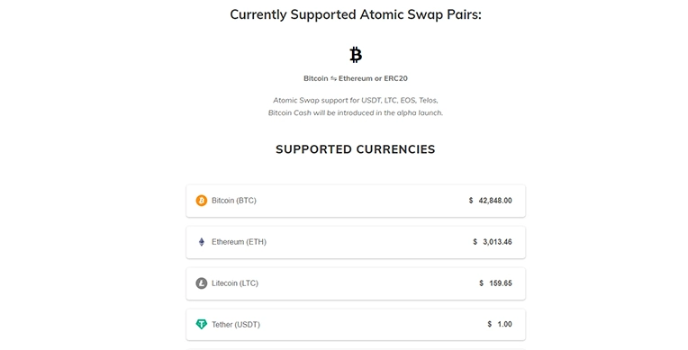 Check out the secure Atomic Swap Wallet lets users seamlessly exchange tokens for Bitcoin Wallet and USDT with other users free of cost. This intuitive interface supports TLOS, LTC, EOS, BCH, etc., for an effective access experience.