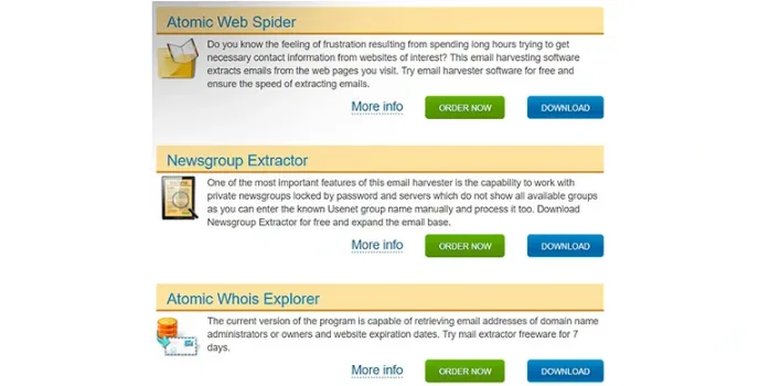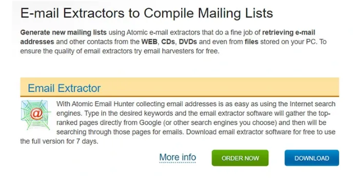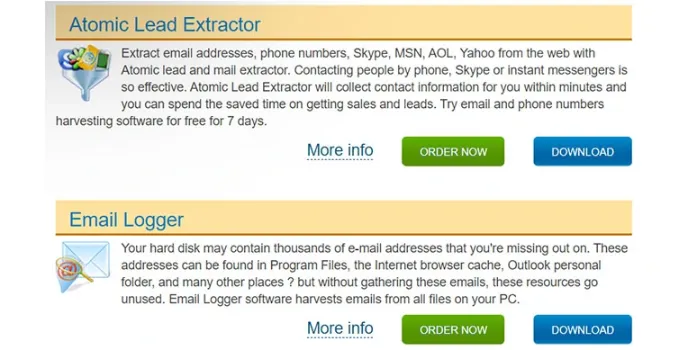 Let us look into the various features of this software related to email extraction. Atomic Lead extractor makes it simple by extracting the phone number, Skype id, MSN, Gmail from the web. This feature helps in effective communication through Skype or another messenger. After you input the details, it fetches the contact information within a minute. Hunter for Chrome feature grabs from the websites which you visit. It will remember all the emails of the website you visited unless the history of the Browser is deleted.