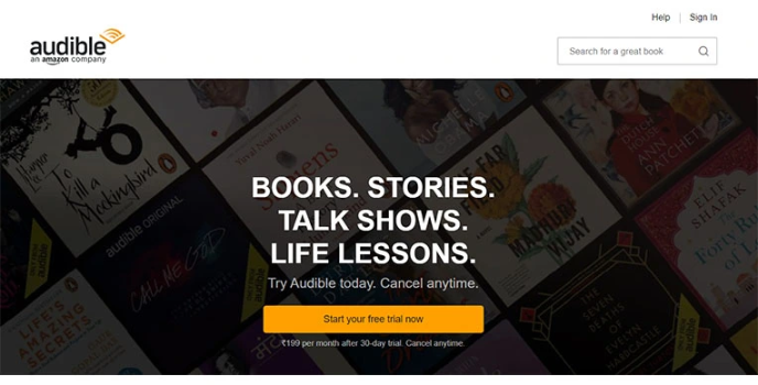 Audible has the best audiobook services. They have all different stories, advisable, and many other category books. And the best part is the audiobooks wonโt sound like some automatic or robotic generated audio clips. The books are read by real people and recorded with all the emotions. You can easily visualize what the context is while listening to these audio clips.
