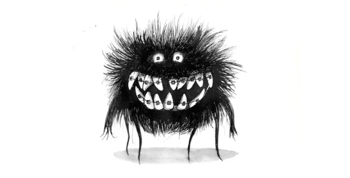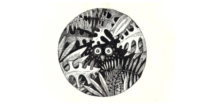 - Black and while object and character illustration