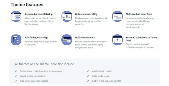 With a drop-down menu with multiple columns, Avenue is now used by a significant amount of people. This best Shopify theme can display a vast collection of themes on the homepage that makes any web portal great. Speed is one of the main criteria of any website. With the implementation of this theme, the website can get a Super-fast loading speed platform. More than 100 attractive products are available in the Marketing WordPress Theme.