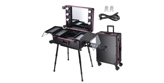 The vibrant lights and a large mirror create a makeup studio effect, encouraging people to do the makeup with full involvement. The best thing about this storage trolley case is plenty of beauty accessories can be placed in an organized way, enhancing the appeal of this cosmetic luggage.