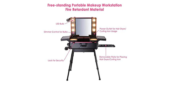 SHANY Studio and NYX Professional are two famous storage luggage stores for storing cosmetics and transferring them to places to deliver a professional environment for makeup artists. AW is the best freestanding workstation with brilliant lights for professional prospects in meeting all the beauty requirements in one space.