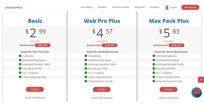 The Award Space Hosting Services offer 24 hours of live chat support and offer free domain names with three subdomains. Using this web hosting service, you will achieve high-performing websites that come with a quicker and more efficient response time.