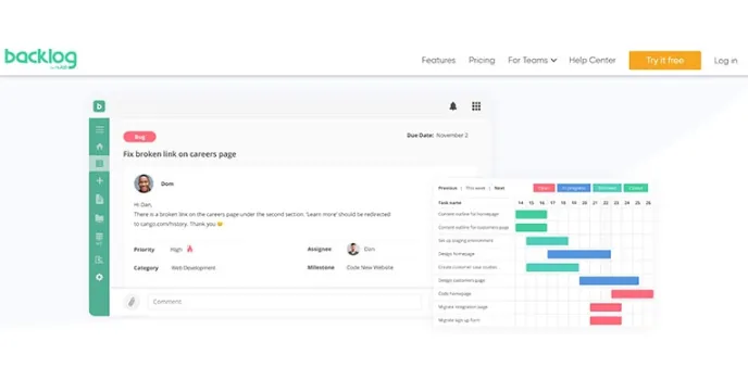 Considered to be an effective project management solution, BackLog helps to provide functions of collaboration, coordination, and communication between different team members and takes care of essential tasks like project tracking, problem-solving, etc. The users get the flexibility to organize tasks in a single place and then further delegate them to others.