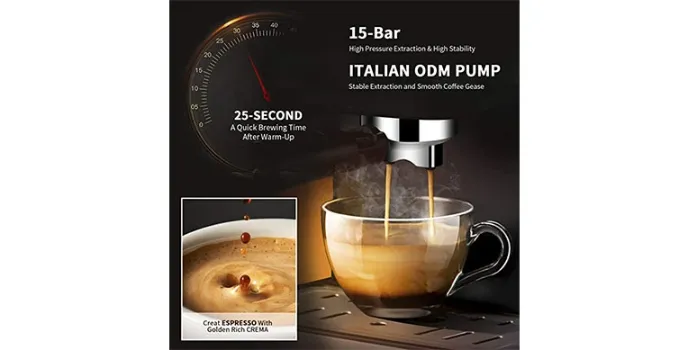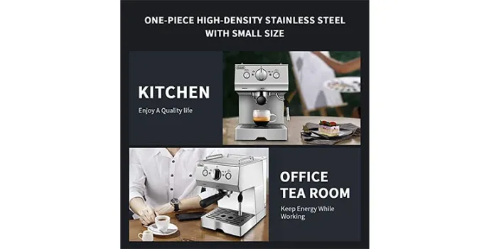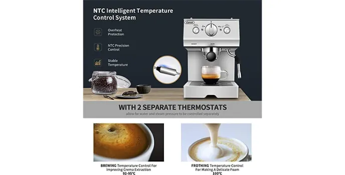 Barsetto espresso machine features a double temperature control system that allows the users to adjust the temperature as per their requirements and preferences. This feature of the espresso machine makes it more unique than the Delonghi Espresso Coffee Machine. Moreover, compared to the Nespresso Espresso Coffee machine, the Barsetto espresso machine is embedded with a simple design of the push control button panel that allows for easy usage on behalf of the users. Moreover, a simple control panel also makes the operation simple and hassle-free for first-time users.