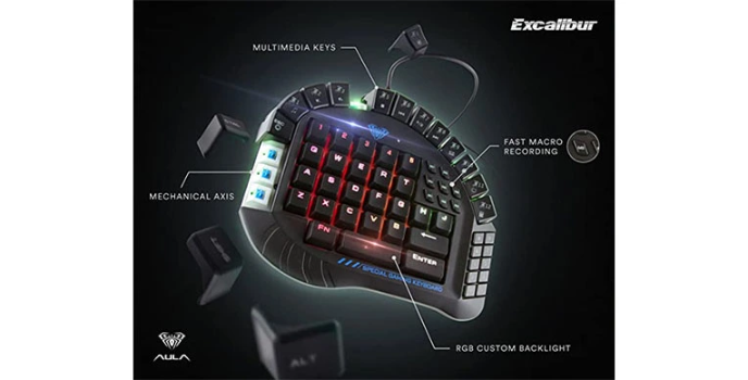 Ergonomic Palm Rest architecture eliminates tiredness for skilled gamers. After ten minutes of idle gaming, the keyboard moves to sleep mode and presses every key to restart the keyboard. It is a thirty entirely programmable, eight-way thumb pad with the 50g Aula Mechanical Switches actuator. The immediate flipping of eight keymaps and the AULA one-handed keyboard is compatible with Windows XP, Windows Vista, and Windows 7, Windows 8, Windows 10.